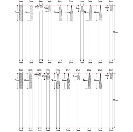 Carbide Burrs Cutters Set Double Cut 3mm 1/8" Inch Shank Diameter Carving Power Tool Parts 20Pcs