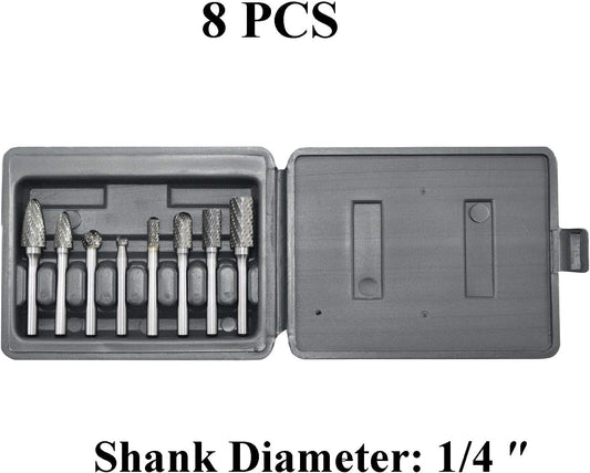 Tungsten Carbide Burr Set 1/4 inch ( 6.35 mm) Shank Diameter Rotary Burr File,Set of 8 Pcs