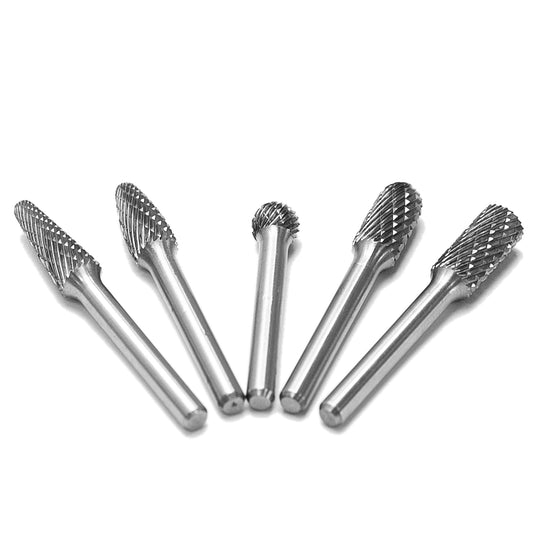 5 PCS Tungsten Carbide Burr Set 1/4 inch ( 6.35 mm) Shank Diameter Rotary Burr File,Set of 5 Pcs