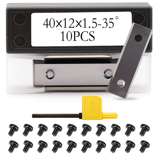 Carbide Inserts Cutters 40x12x1.5mm-35° 2-Edge Woodworking Replacement Knives for Groove Spiral Helical Planer Cutterheads