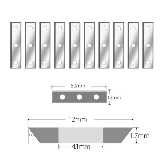 Woodworking Indexable Carbide Inserts Knife 50x12x1.7mm-35° Z=4 Reversible Cutter Replacement Blade for Surfacing Trimming Cutterheads or Hand Holder Scraper