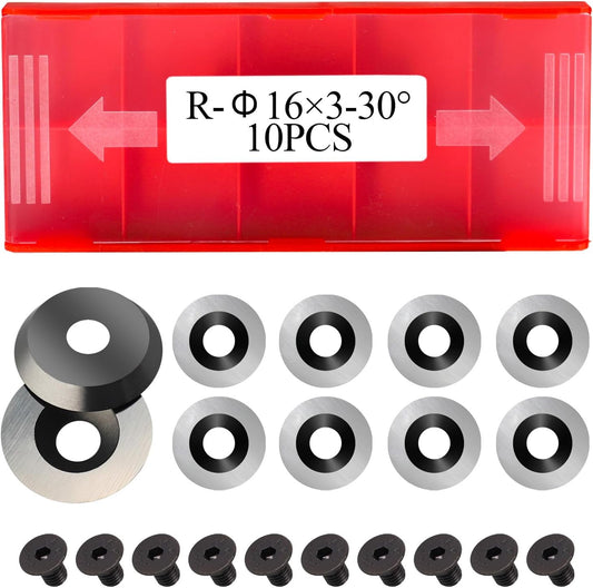 Woodturning Carbide Inserts 16x3.0mm-30° Round Replacement Tungsten Cutters Indexable Blades for EWT Finisher Wood Turning Tools