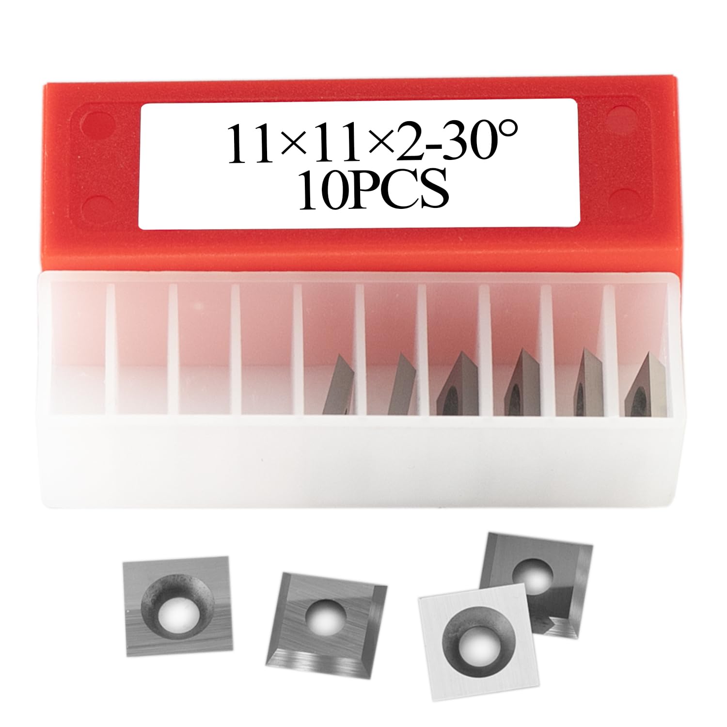 Application: hardwood,softwood, chipboard, particle board, HDF and MDF, etc.Yeptooling 11x11x2.0mm-30°-4 Edge carbide insert knife is perfect for roughing wood, outside curves, concaving wood surfaces and other general wood turning activities.